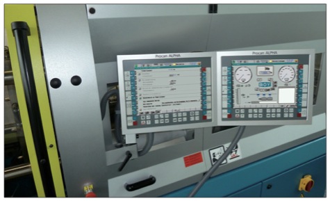 第二射台的TFT显示屏装配较长的电缆。所以,第二射台的显示屏可以放置在与注塑机主机的Procan ALPHA 显示屏同一侧,如下图所示, 这样操作更加符合人体工程学。